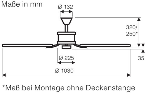 - Die Struktur der Decke sowie die Befestigungsmittel müssen das 4-fache Gewicht des Ventilators tragen können.
